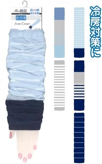 45-977 977綿混日よけアームカバー45cm(ボーダー柄)