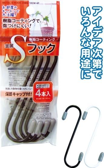 商 品 名:40-593 樹脂コーティング 金属Sフック内径25mm・12cm 4本入