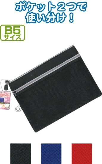32-894 Wファスナーメッシュポケット付!ポリエステル生地ケースB5